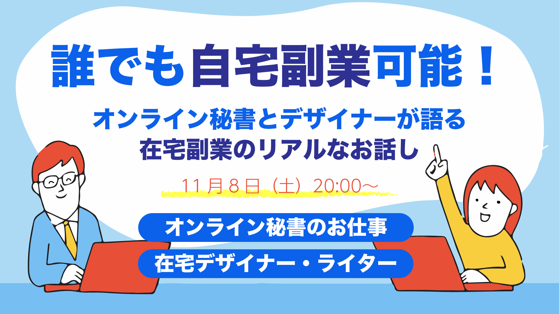【11/8】本当にできる?自宅で叶える自由な働き方 オンライン秘書とデザイナーが語る在宅副業セミナー