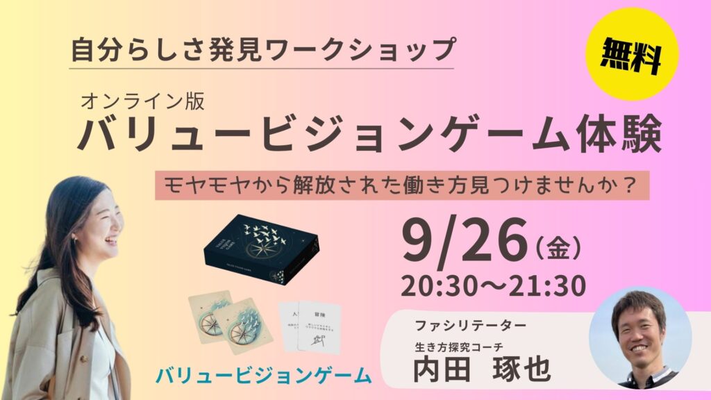 【9/26】自分らしさ発見ワークショップ “オンライン版”【バリュービジョンゲーム体験】