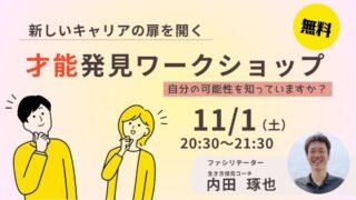 将来・働き方を学ぶセミナー2025年10月2日【11/1】~新しいキャリアの扉を開く~才能発見ワークショップ