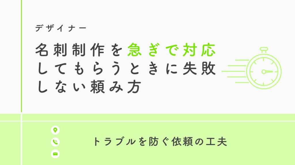 急ぎの名刺制作は、焦りからミスが起こりやすいもの。けれど、事前準備と的確な依頼方法を押さえれば、短納期でも満足のいく名刺を作ることができます。