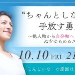 2025年9月12日 / 最終更新日 : 2025年9月12日 児島佐予子 メンタル・自己成長を学ぶセミナー 【10/10】“ちゃんとしなきゃ”を手放す勇気〜他人軸から自分軸へ、心をゆるめるスイッチ〜 「ちゃんとしなきゃ」と頑張りすぎて、心が疲れていませんか? 周りにどう見られるかが気になって、自分の気持ちはどこか後回し。「ちゃんとした母でいなきゃ」「もっと稼がなきゃ」「迷惑をかけちゃいけない」そうやって“ねばならない […]