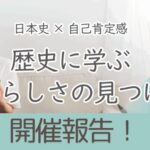 2025年10月6日 / 最終更新日 : 2025年10月6日 鈴木結以 活動日記 【歴史に学ぶ自分らしさの見つけ方】 【開催報告】 「どうせ私なんて…」から抜け出すヒントが見つかる 『日本のルーツを知り、自己肯定感を育むお話会』を開催しました! 先日、『日本のルーツを知り、自己肯定感を育むお話会』を開催しました。ご参加くださった皆さま、 […]