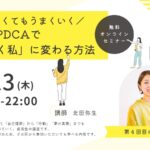 2025年9月12日 / 最終更新日 : 2025年9月12日 北田弥生 仕事・起業を学ぶセミナー 【11/13】PDCAで「行動が続く私」に変わる方法 「行動したいのに、なかなか続かない…」 「目標を立てても、つい違うことに気をとられてしまう…」 そう悩んでいませんか? それは、あなたが弱いからではありません。行動を「続けるための仕組み」を知らないだけかもしれません。 […]