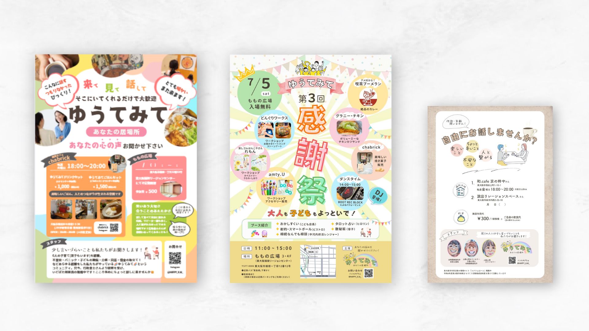 チラシを見た瞬間なんと優しいチラシなんだろうと思いました。言葉、字体にもやさしさが伝わり色使いもキツくなく全てが優しくて。イラストの絵(おしゃべりの絵・場所・財布)で何を伝えたいのかが一瞬でわかり、その上(言葉ではうまく表現できないのですが)上からの強気なガンッという言葉(何でもきくで!)といったものではなくとにかくチラシ全体がふんわり〜と包まれる様なあったかさがあって。自分の心に暖かな日差しが差し込んできたようなチラシです。