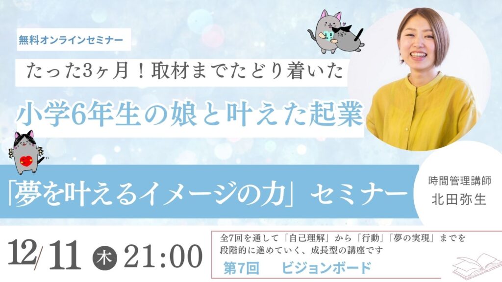 【12/11】小学6年生の娘と叶えた起業「夢を叶えるイメージの力」セミナー