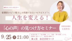 このセミナーが、新たな一歩を踏み出すきっかけとなれば嬉しいです。一緒に、心から望む未来を見つけましょう。