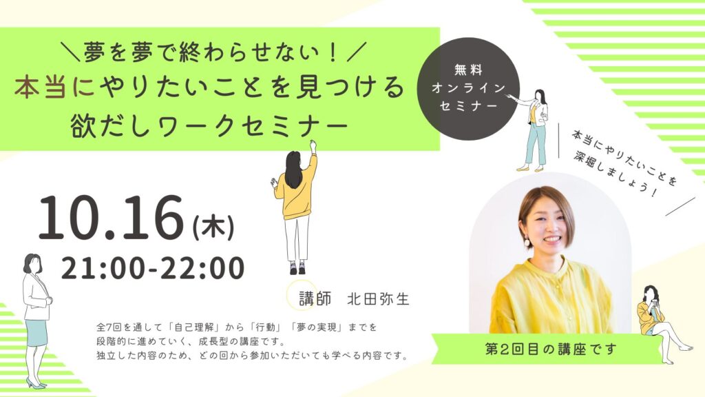 【10/16】本当にやりたいことを見つける欲だしワークセミナー